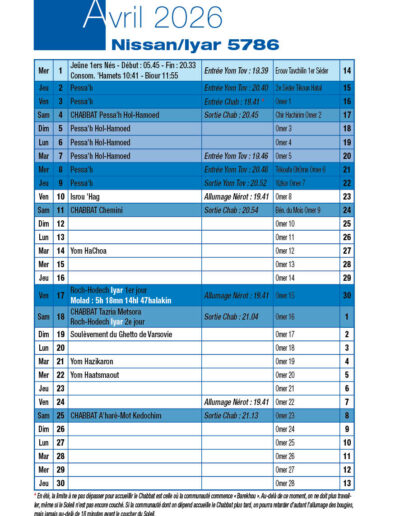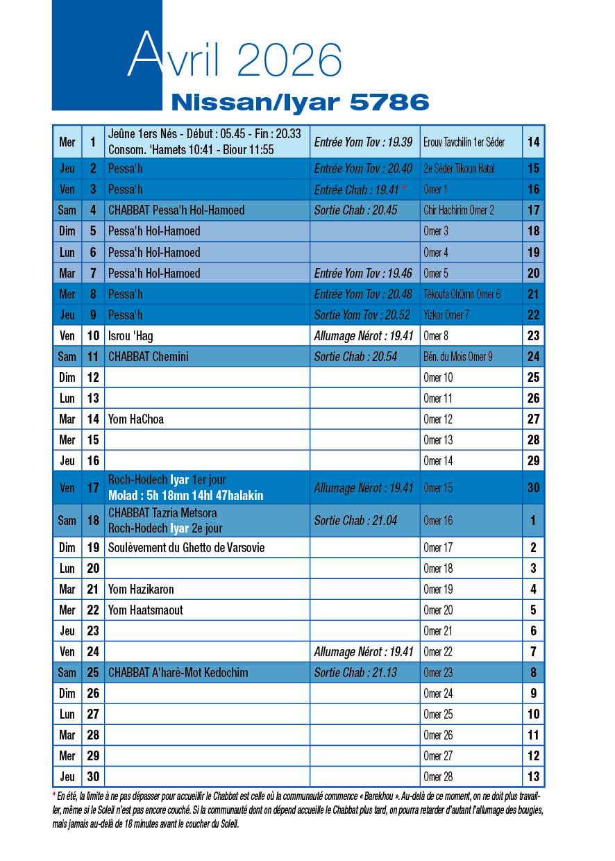 Chabbat 4 Avril 2026 |