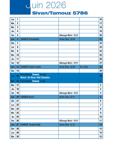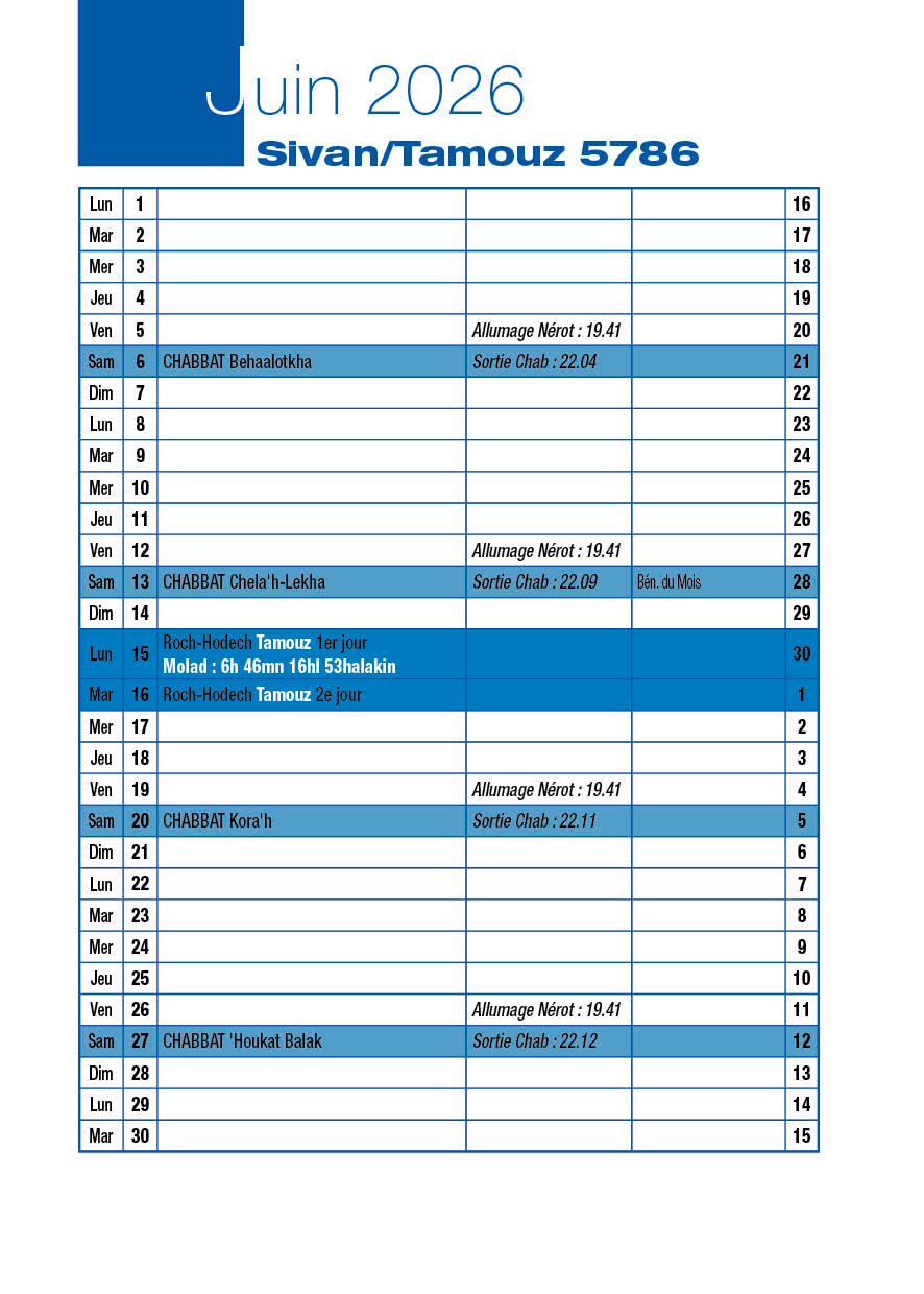Veille de Roch-Hodech Tamouz Dimanche 14 Juin 2026