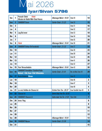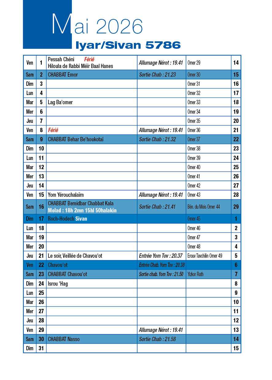 Chabbat 23 Mai 2026 |