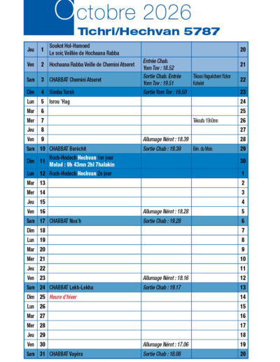 Veille de Roch-Hodech Hechvan Mardi 21 Octobre 2025